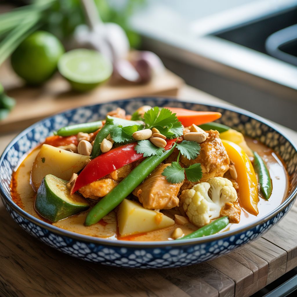- 2 el Massaman currypasta (let op suikers/vetten, kies een magere variant)