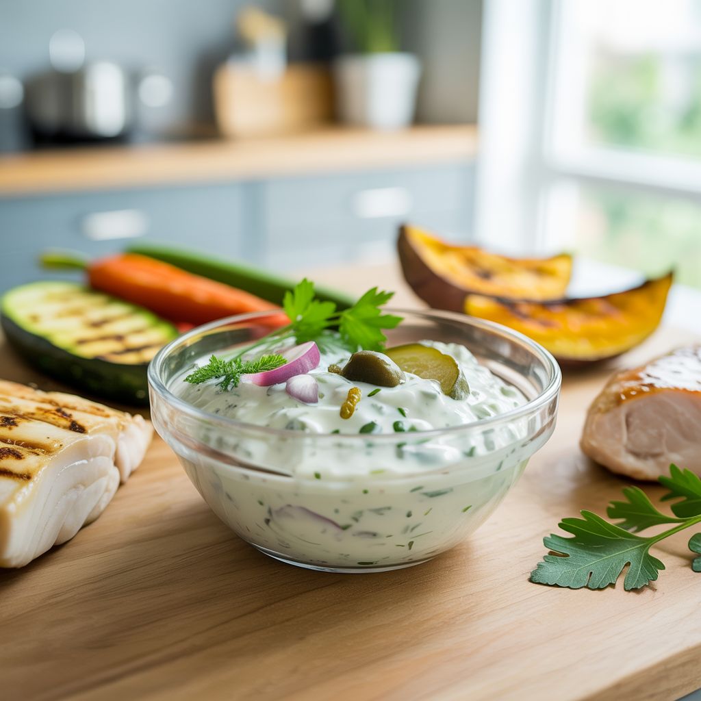 Deze frisse, huisgemaakte tartaarsaus past perfect bij vis, gegrilde kip, groenten uit de oven of een magere hamburger.