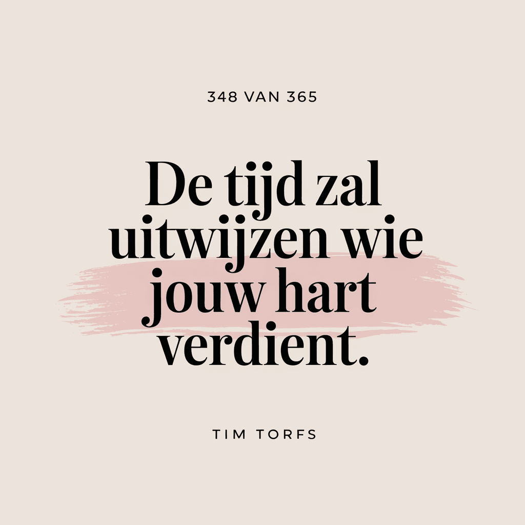 Dan is de zin “De tijd zal uitwijzen wie je hart verdient” opeens niet meer alleen troost, maar ook richting. Soms is het antwoord: “Niet deze persoon.”